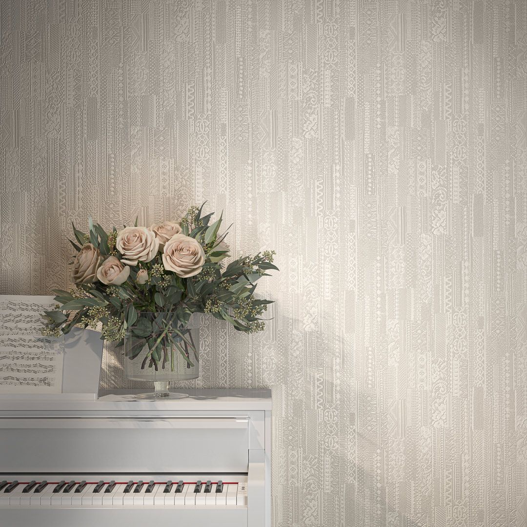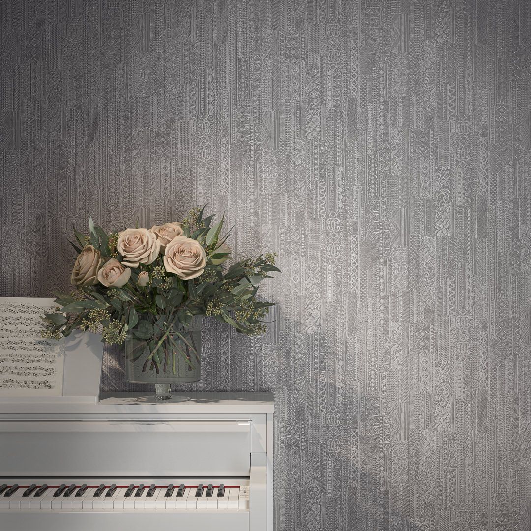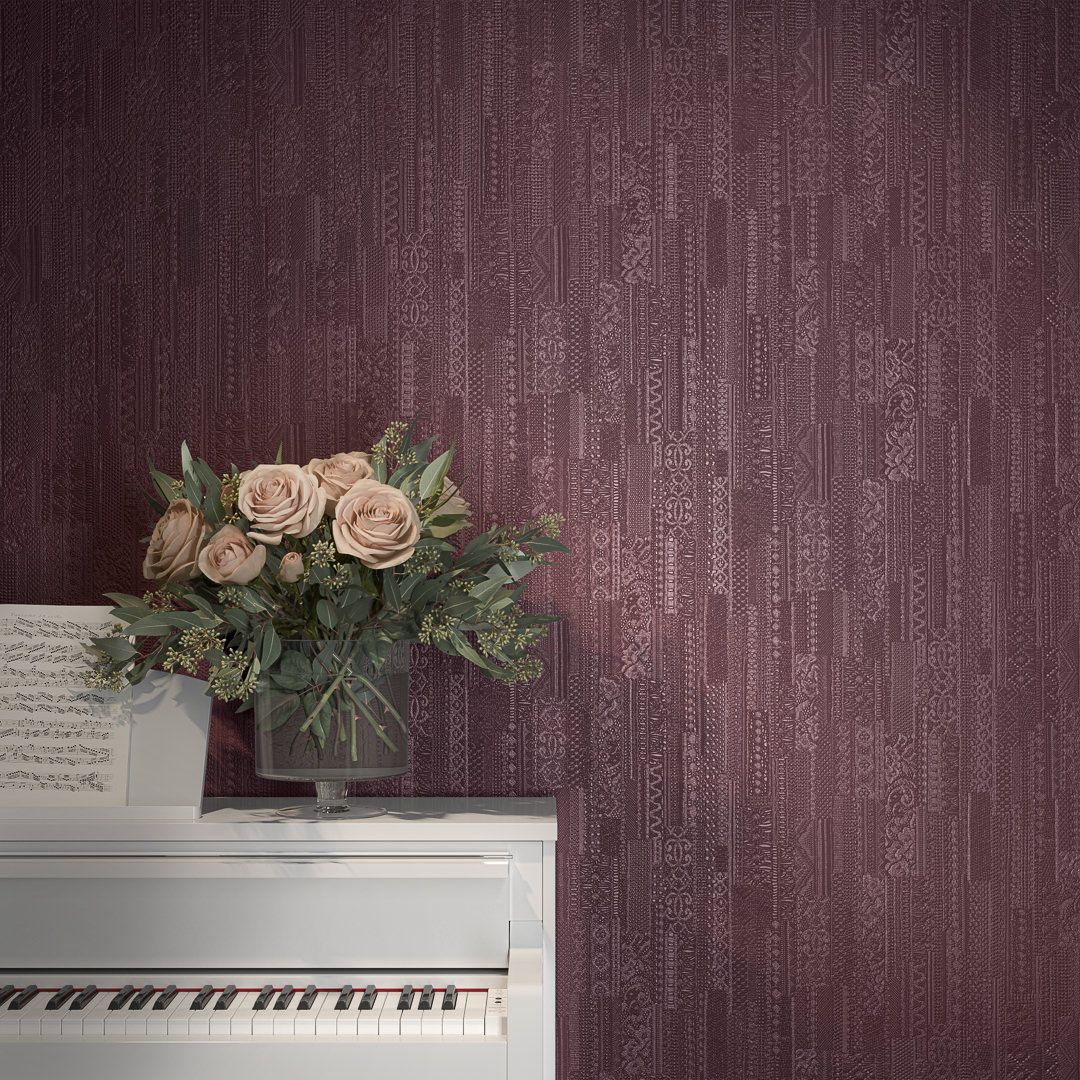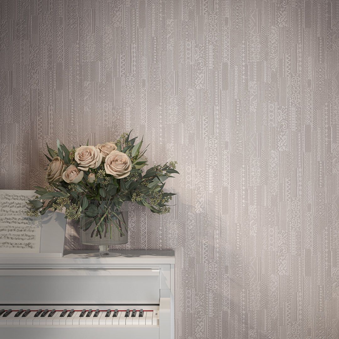 В серии — несколько артикулов в матовом исполнении, с тиснением, напоминающим искусную ручную вышивку. Узор создаёт эффект тканой поверхности и предложен в нескольких цветах. Четыре из них — нежные, пастельные, подходящие в качестве спокойного фона для любого помещения. Ещё три представляют более контрастные цвета: это насыщенный серый, а также «цвет шалфея» и «дикая вишня». Эти оттенки отлично вписывается в современный интерьер, помогая отделке обрести новое звучание.