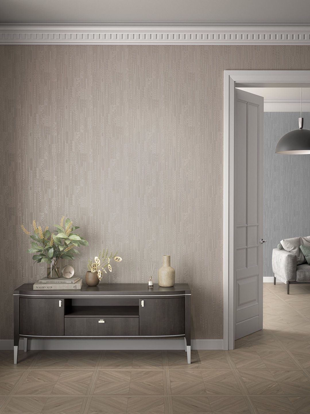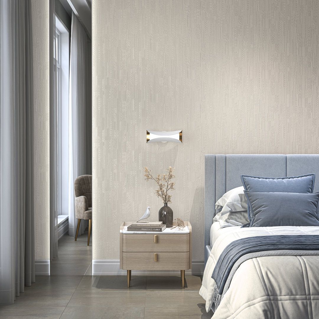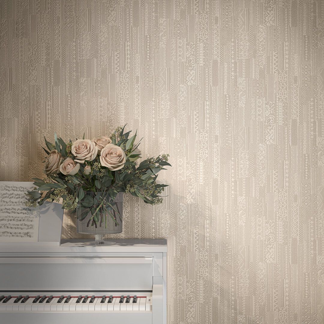В серии — несколько артикулов в матовом исполнении, с тиснением, напоминающим искусную ручную вышивку. Узор создаёт эффект тканой поверхности и предложен в нескольких цветах. Четыре из них — нежные, пастельные, подходящие в качестве спокойного фона для любого помещения. Ещё три представляют более контрастные цвета: это насыщенный серый, а также «цвет шалфея» и «дикая вишня». Эти оттенки отлично вписывается в современный интерьер, помогая отделке обрести новое звучание.