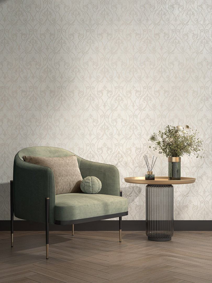 Обои виниловые на флизелиновой основе Дамаск мотив, серый