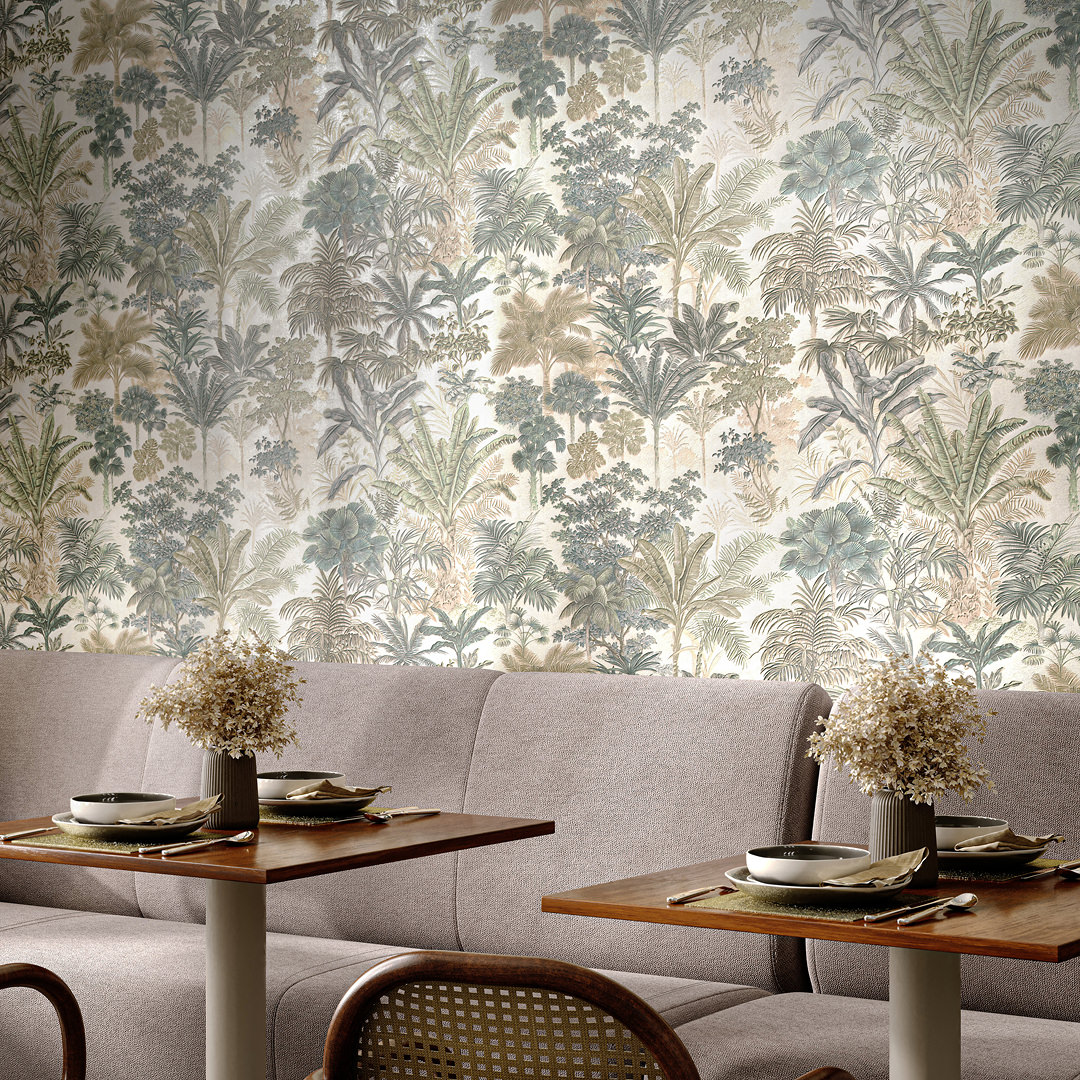Обои виниловые Оазис мотив, тёмный зелёный