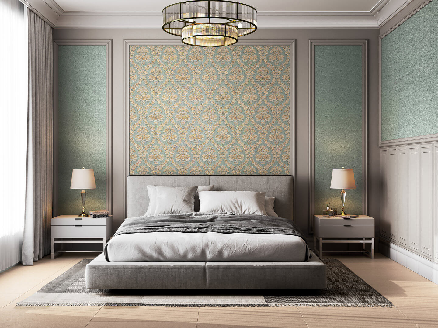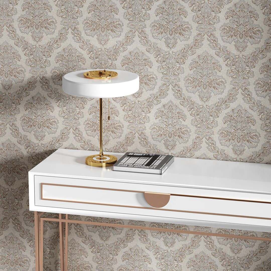 Обои «Палаццо» вдохновлены красотой дворцовых покоев. В мотиве использован знаменитый дамасский узор с крупными цветами. Богатое тиснение придаёт им объём, а на поверхности сверкают золотые блики. Это великолепие отлично дополняют фоновые обои в двух исполнениях. Первое воспроизводит структуру капитоне, уместную в классическом и современном дизайне. Ещё один вариант фона – обои с мелкой текстурой благородного твида, в нескольких оттенках.