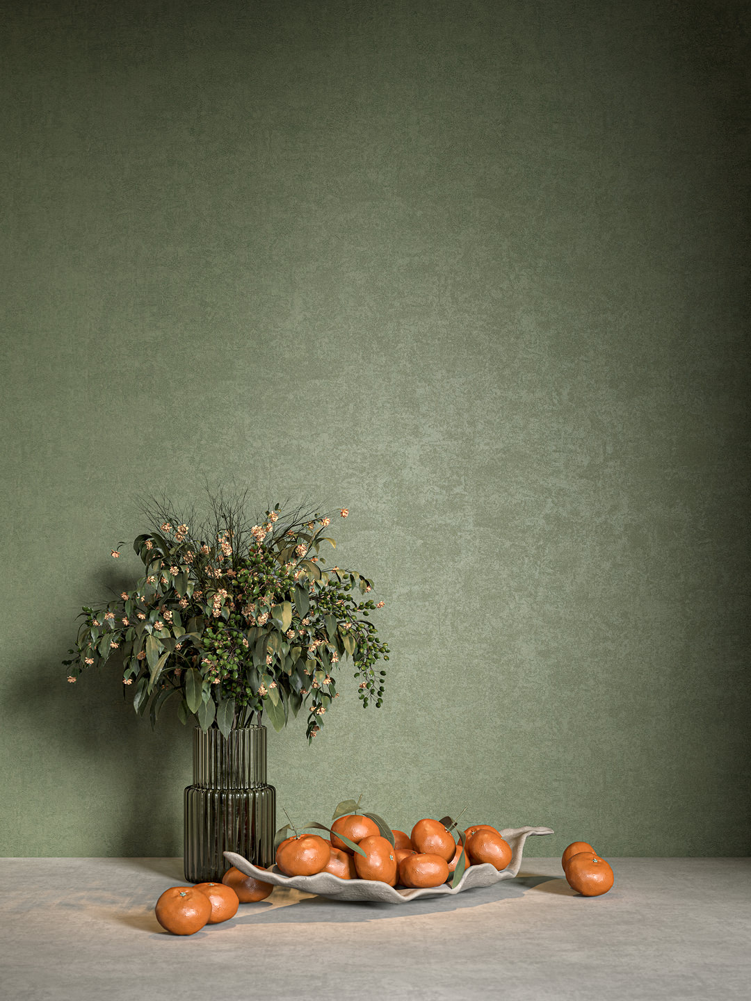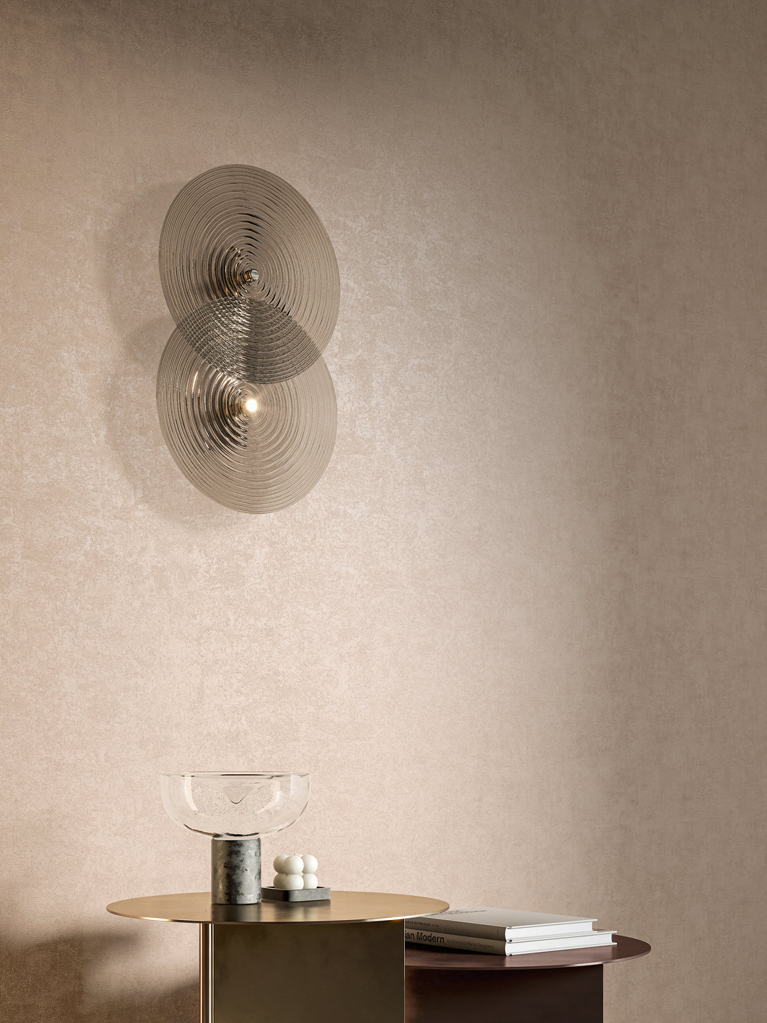 Обои «Трофи» выполнены с матовой текстурой и деликатным тиснением, которое придаёт поверхности сходство с бетоном. Цветовая гама содержит лишь два светлых оттенка. Остальные – насыщенные, придающие брутальному материалу новое звучание. В том числе, в серии предложены два актуальных бежевых, синий и цвет шалфея, который в обстановке готов в свежем ключе раскрыть тему природной натуральности.