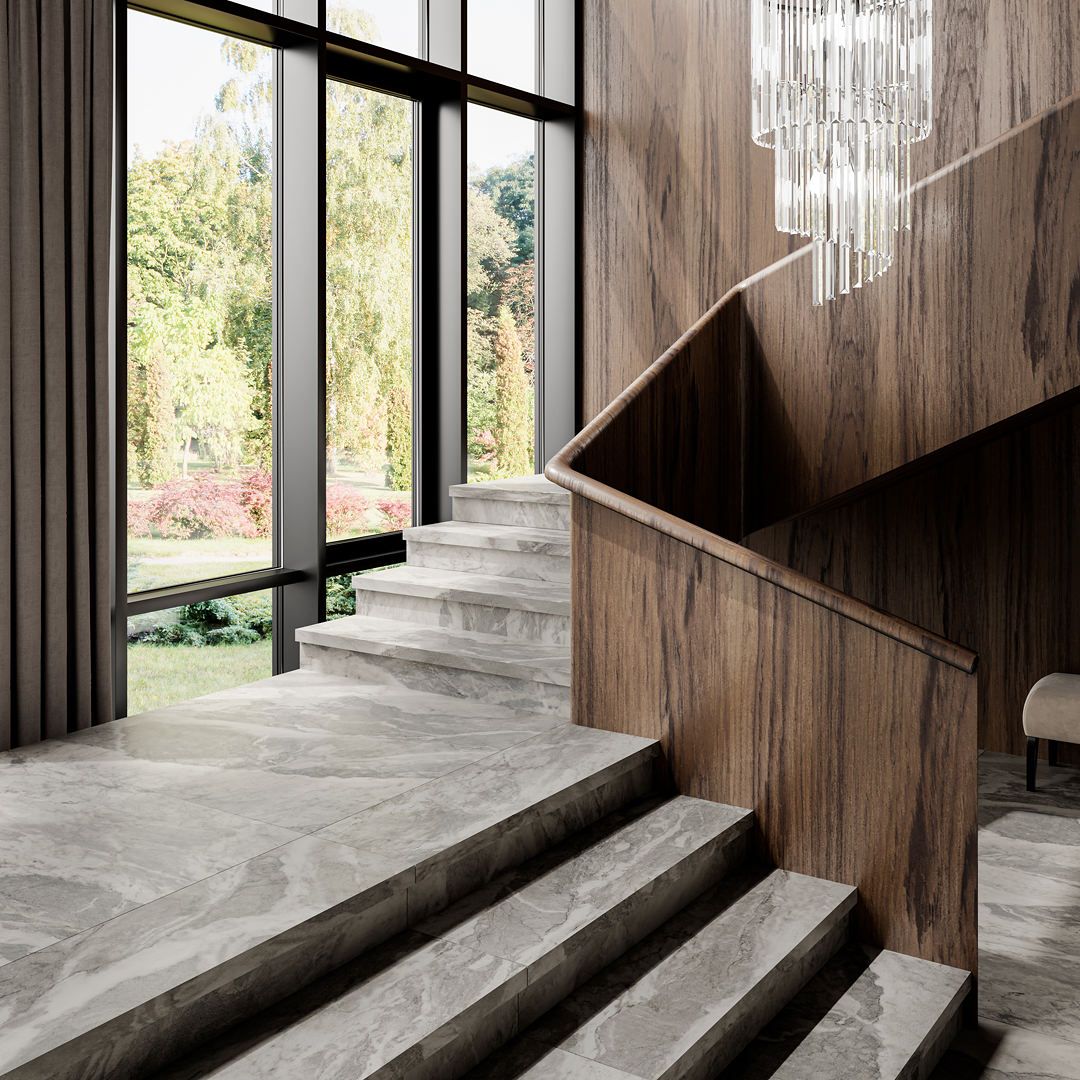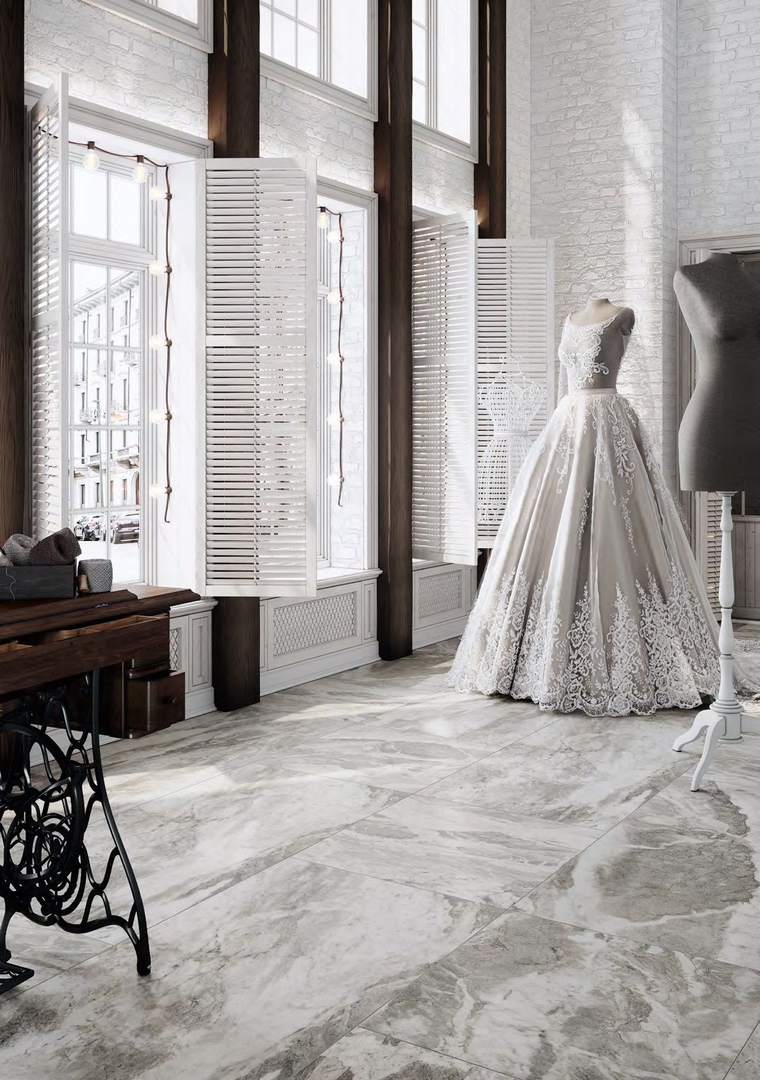 Мондрагонский мрамор, некогда добываемый в одноимённой местности на побережье Тирренского моря, завораживает своим мягким, будто растушёванным дымчатым рисунком. Сегодня добыча этого красивейшего материала прекращена, но его очарование в полной мере запечатлел керамический гранит, произведённый по инновационной технологии Double Loading. Рельефные вкрапления минералов, похожие на крупинки сахара, воссозданы с помощью специального состава.