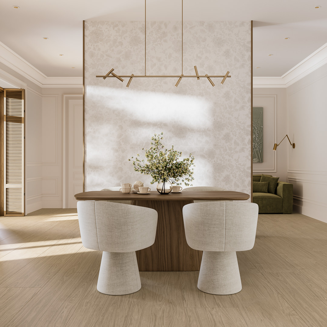 Декор «Гобелен» формата 60×119,5 хорошо сочетается с плиткой «Танжер» из Марокканской коллекции.