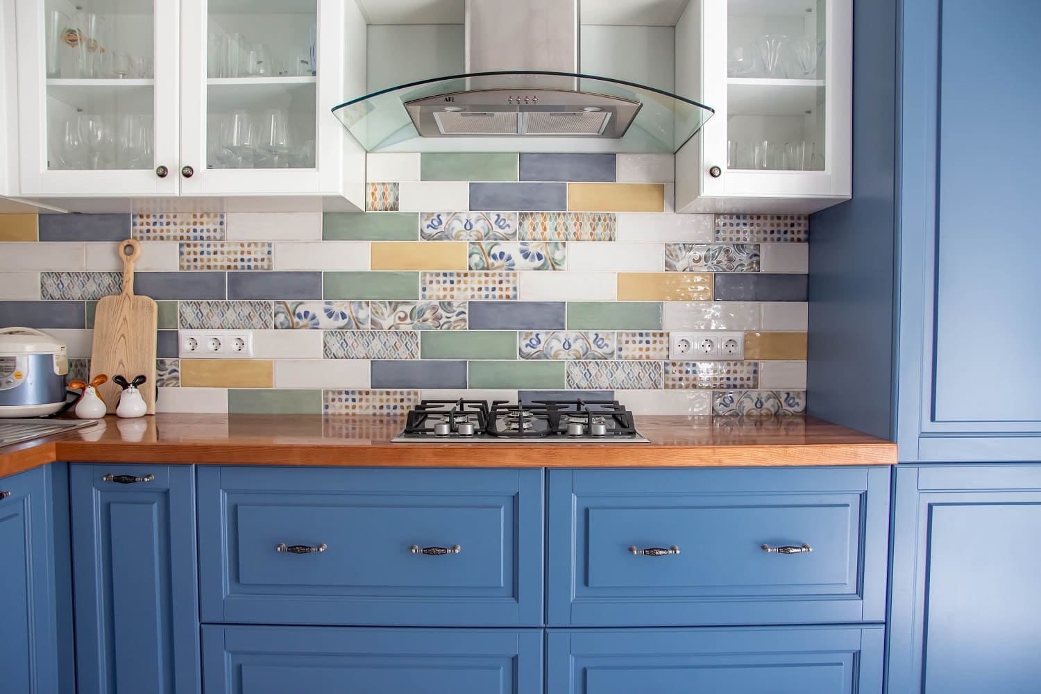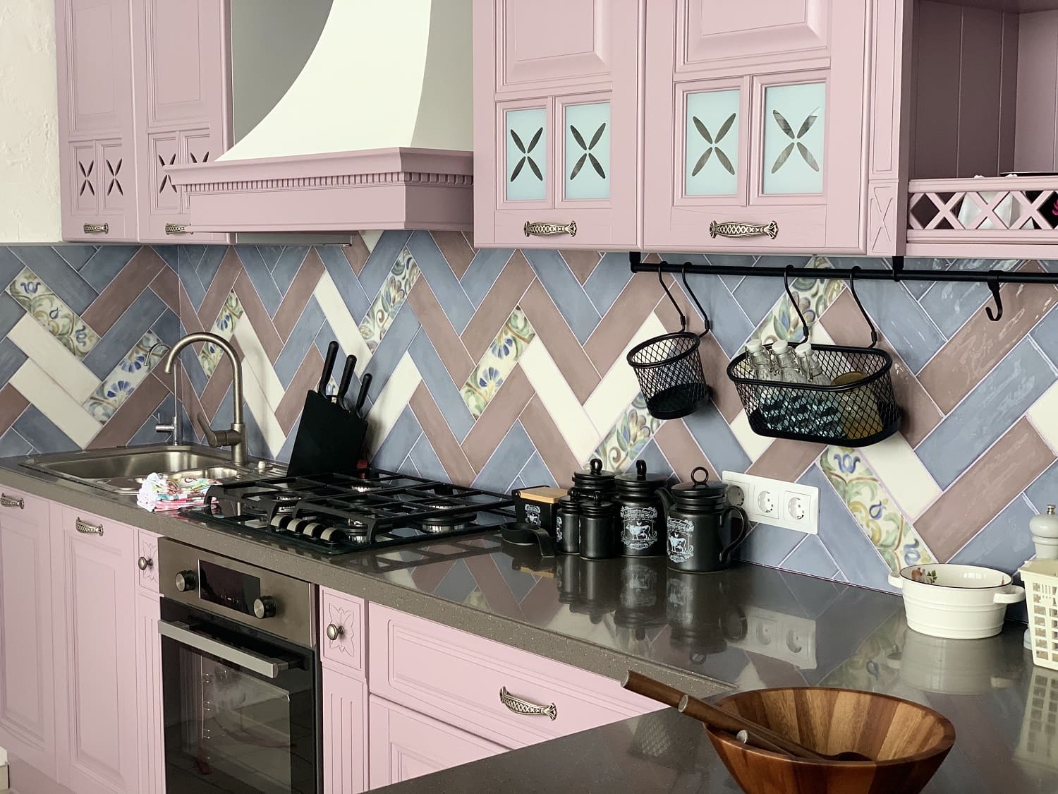 Семь цветов фоновой плитки, покрытой блестящей глазурью, дополнены живописными майоличными декорами. В их росписи угадываются черты стиля ар-нуво с его плавными линиями, флористическими сюжетами и удивительной палитрой — мягкой и выразительной одновременно.
