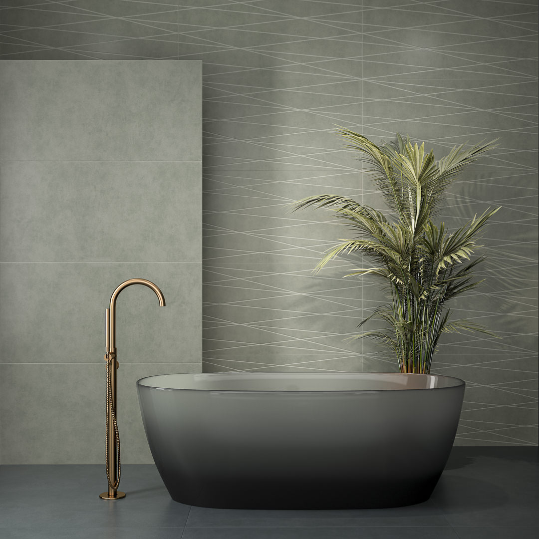 Широкая линейка цветов – от классической серо-бежевой гаммы до терракотового, синего и жёлтого – представлена гладкой плиткой, а также в варианте с геометрическим узором из пересекающихся линий. Дизайнеры оценят разнообразие элементов, входящих в серию: базовая плитка в сочетании с флористическими декорами и двумя видами мозаики (нарезная и с квадратными чипами) открывают безграничные возможности для творчества.