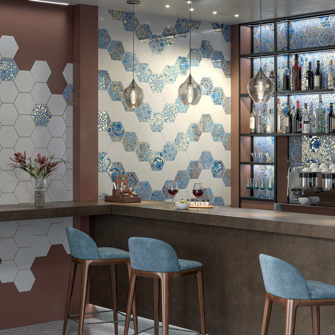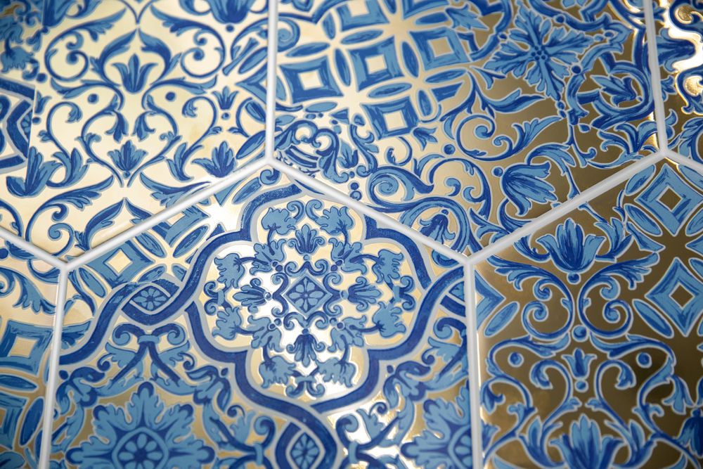 Несколько декоров шестиугольной формы объединены в одну серию общей эстетикой, в которой традиционные португальские узоры соединены с техникой «талья дорада» (Talha Dourada): как правило, она используется при создании пышных резных алтарей, а также богатых золочёных украшений для дворцов и общественных зданий.