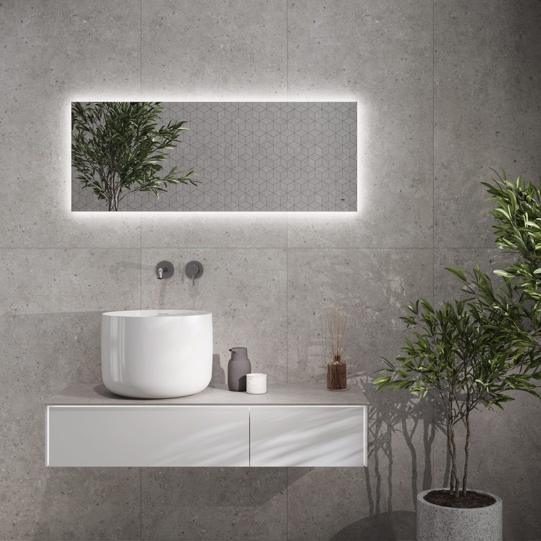 Современные тумбы Маджика представлены в размерах 90 см (с одним ящиком) и 120 см (с двумя ящиками). На выбор для создания ванной комнаты предлагаются три цвета фасадов и корпуса: утренний серый матовый, вечерний серый матовый и венецианский красный матовый. В мебели Маджика реализована двойная сенсорная подсветка: изящным контуром подчеркнут фаcад, дополнительное интерьерное освещение предусмотрено в нижней части, что делает тумбу визуально невесомой.